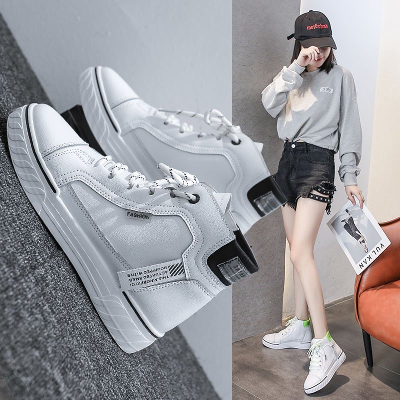Autumn Fashion High Top Sneakers Women Casual Shoes White Flat Female Lace Up Trainers Women Shoes Chaussure Boots A415