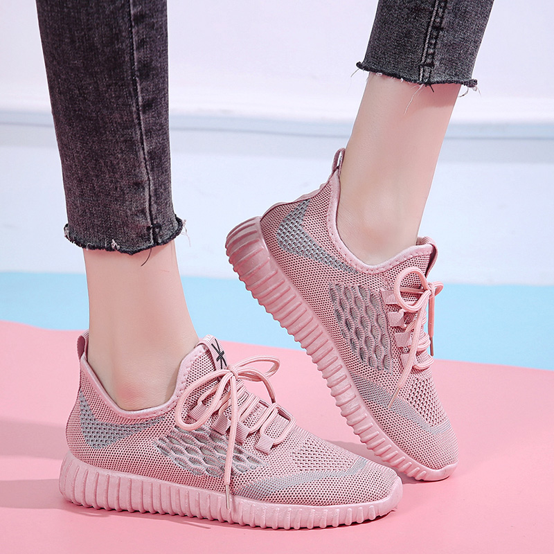 Pink Casual Fly Air Mesh Breathable Sneakers Chaussure Femme Sport Platform Ladies Trainers Shoes For Women Zapatos Mujer